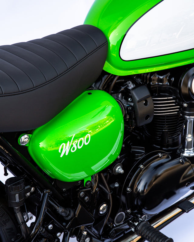 Colour Fuel’s Kawasaki Racing Green tank, set against Pearl White side panels, creates a refined, classical contrast with the Black Edition’s untouched foundation. Each element, measured and intentional, allows the bike to speak without shouting. The outcome? A masterclass in subtraction and precision. By stripping away the unnecessary and elevating the essential, the W800 has been transformed into the Bondi Sentinel: a clean, classic custom that looks faster than it is, sounds more compelling than one might expect, and glides through beachside streets with a kind of quiet confidence usually reserved for locals who somehow always find parking.