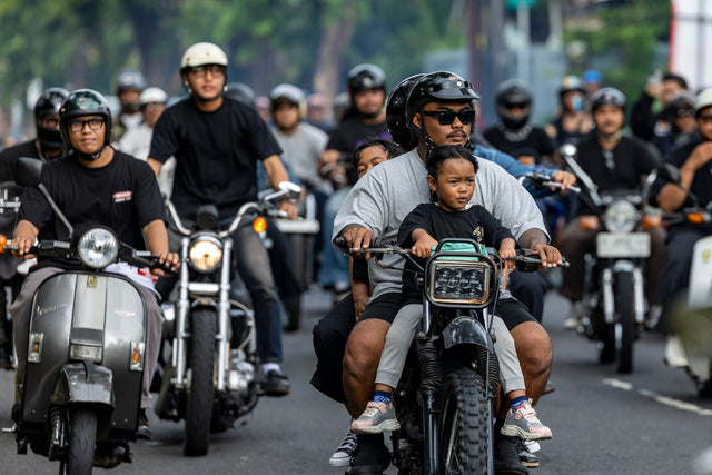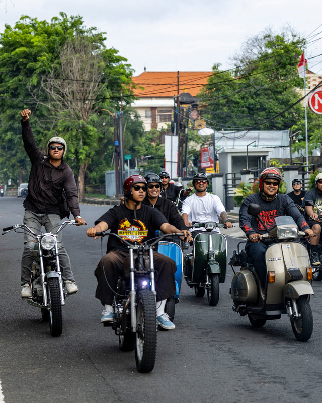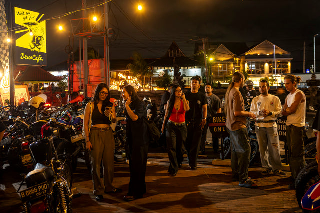 Kami berkumpul di tengah Denpasar, di sebuah kedai kopi sederhana yang akrab bagi warga lokal. Sepanjang satu blok dipenuhi motor; arus kedatangan yang tak henti membuat lalu lintas tersendat dan seluruh area parkir penuh. Obrolan saling bersahutan, menyelimuti suasana dan membangun energi. Di tengah kerumunan yang kian padat, rasa antusias pun perlahan berubah menjadi kegembiraan yang membara.