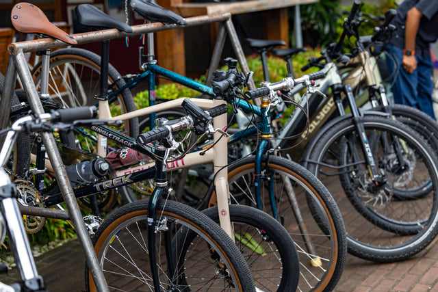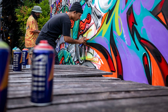 Semua hal baik pasti ada akhirnya, dan akhirnya kami kembali ke Deus Temple. Para rider memarkir motor mereka dan langsung disambut oleh tim seniman graffiti yang sedang mengerjakan mural di dinding samping depan kami sepanjang lima belas meter Tak hanya itu, ada juga sekelompok pesepeda single-speed, komunitas lain yang sama antusiasnya yang datang beriringan dengan sepeda mereka sendiri.
