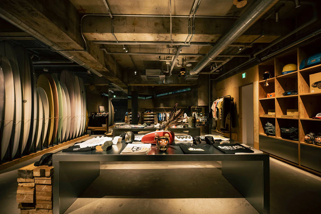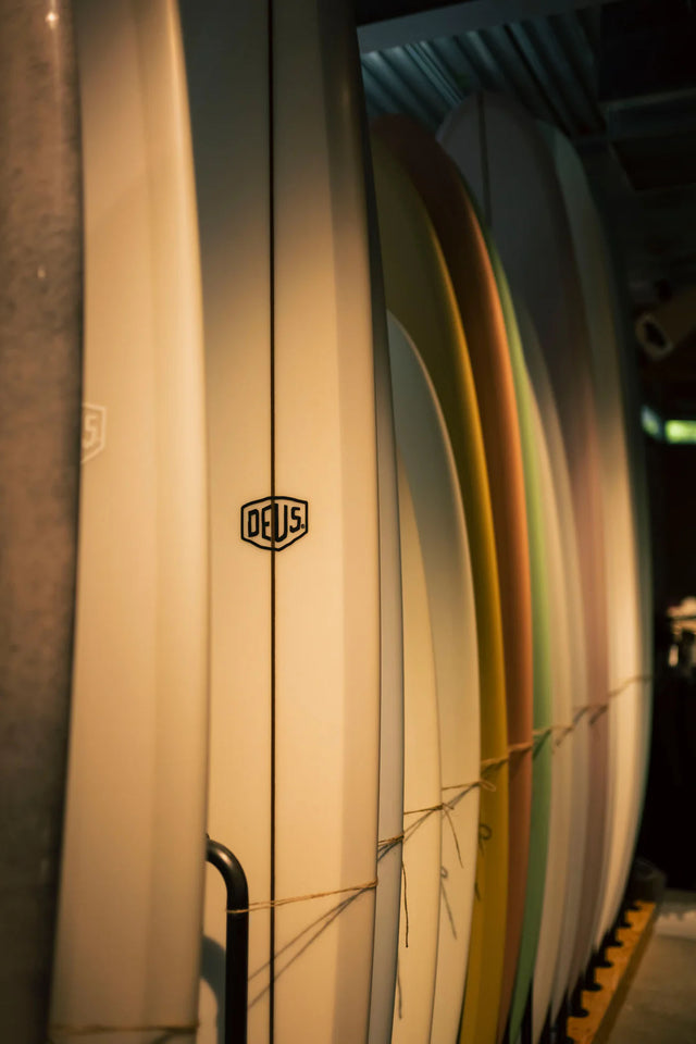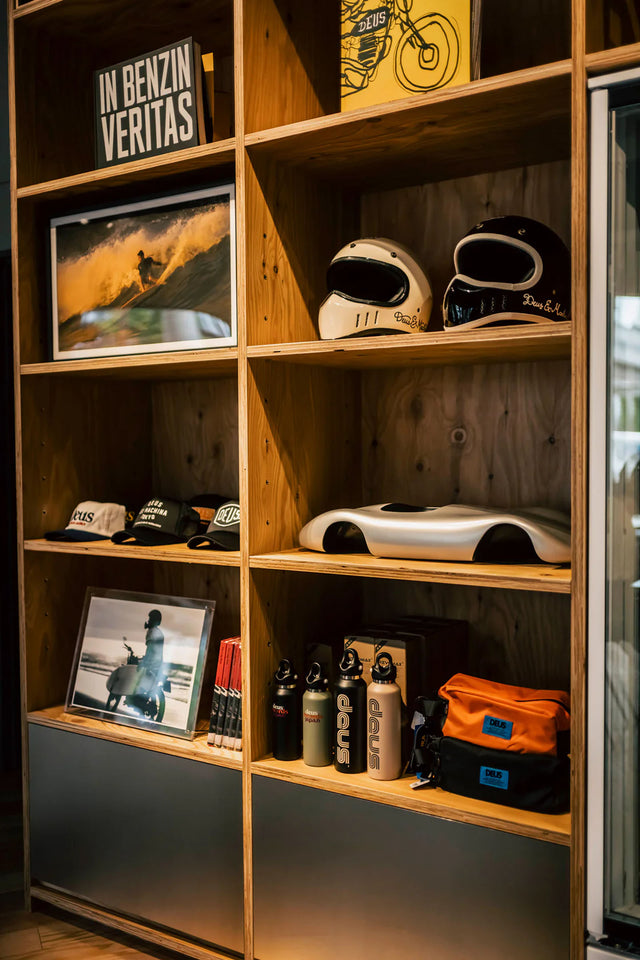 On the edge of Harajuku, a bold new sign has risen - The Residence of Impermanence - in Harajuku, Tokyo is back. Art, surfboards, motorcycles, apparel, café, music - a place where all kinds of enthusiasms collide. Step inside to the Deus Café - a breezy open ceiling space, serving all-day breakfast and the perfect energy for every moment. We're not ones to argue with that. Climb the spiral staircase to surfboards quietly lined against a softly lit backdrop.