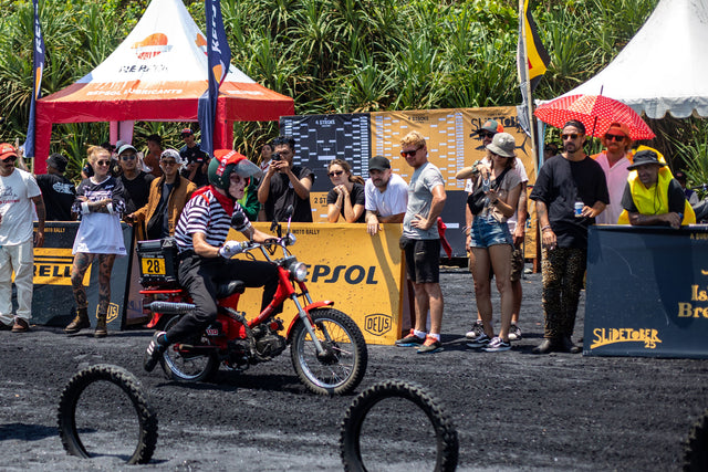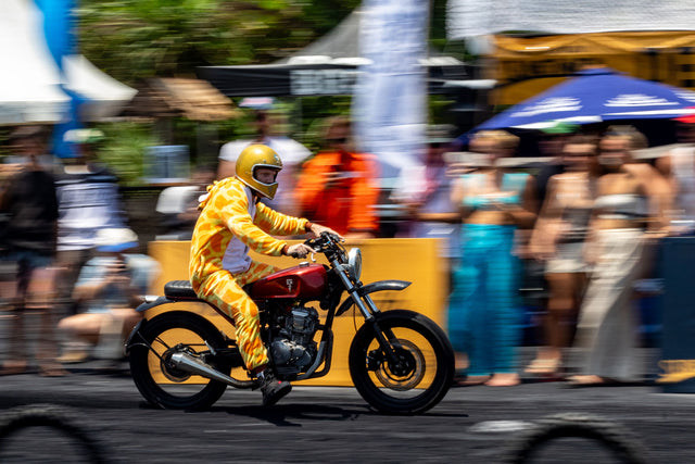 Slidetoberfest is what happens when you throw boards, bikes, and Bali into a blender and forget to put the lid on. Born to celebrate the Deus Temple of Enthusiasm’s opening, at fifteen years of age, it’s an annual excuse for organised mayhem — part pilgrimage, part piss-take, all heart.