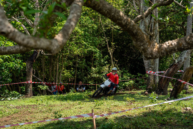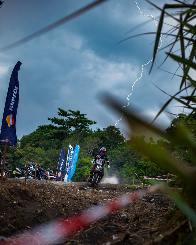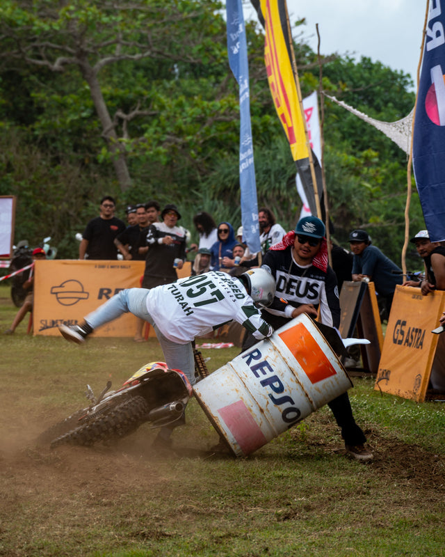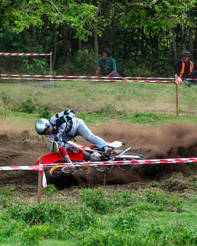 This year’s playground was Pantai Kelecung, raw, remote, and still clinging to the Bali of old. Coconut palms, riverbanks, and open fields formed our trackside theatre. The route? A knot of sand, grass, and grit designed to test balance and patience in equal measure. They tore through it, engines barking, tyres biting, laughter bouncing off the palms.