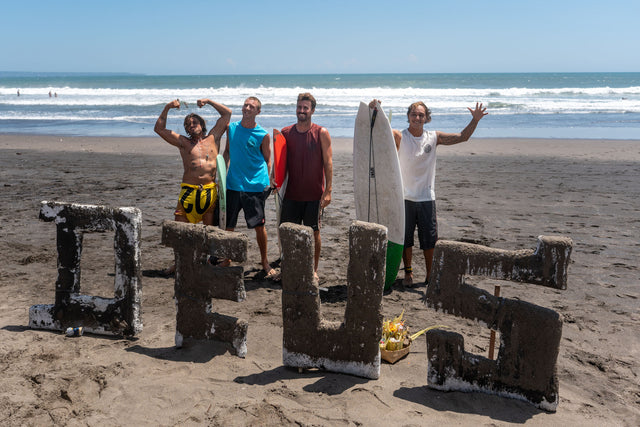 We kicked off where we always should… in the drink. Pererenan Beach, dawn. The sand was cool, the waves were clean, and the only thing louder than the shore break was the hiss of our coffee machine firing up. The Deus circus rolled in before the sun had even thought about clocking on. Tents up, boards lined, beers chilling, speakers humming, the preamble to a perfectly chaotic day.