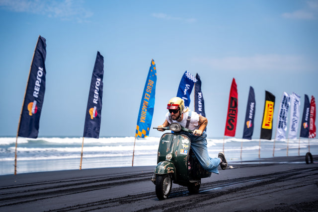 The Deus circus packed up overnight and rolled twenty clicks north to Pasut Beach, where the black sand shimmered like a tarmac mirage. Day two flew under the banner of the Dress Up Beach Drags, a place where chaos is an art form.