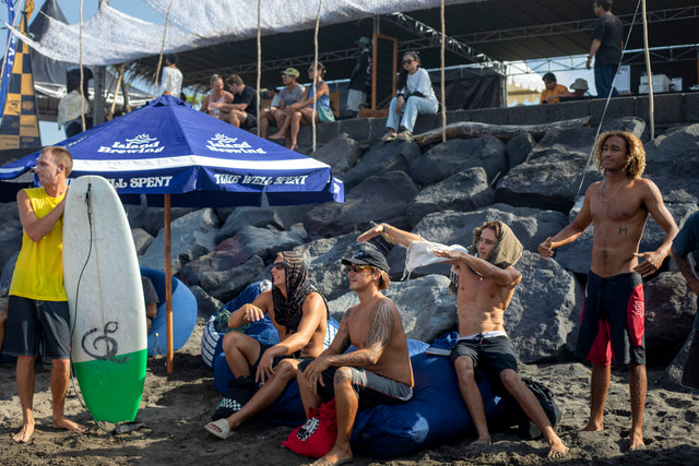 Pererenan was firing. Small barrels spun off the right-handers, and the riders painted arcs and found pockets in the glassy faces. Onshore, Jared Mell and Ambrose McNeill were our twin jesters on the mic - heckling, hyping, and handing out comedy gold between waves. The camaraderie was thick, the heat relentless, and the sand hot enough to make a grown man sprint for shade.